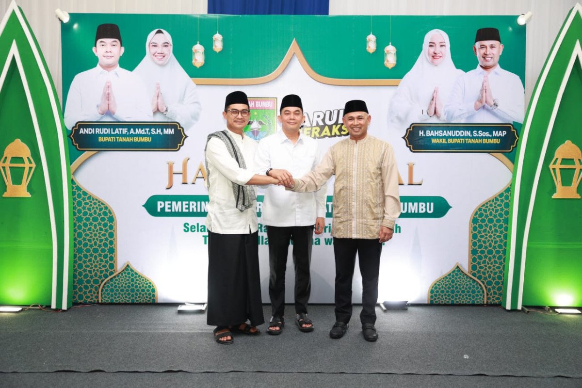 “Mari kita rayakan Idul Fitri ini dengan hati yang tulus. Saya Andi Rudi Latif beserta keluarga dan seluruh jajaran Pemkab Tanbu mengucapkan selamat Hari Raya Idul Fitri 1 Syawal 1446 H, mohon maaf lahir dan bathin,” ucap Bang Arul.