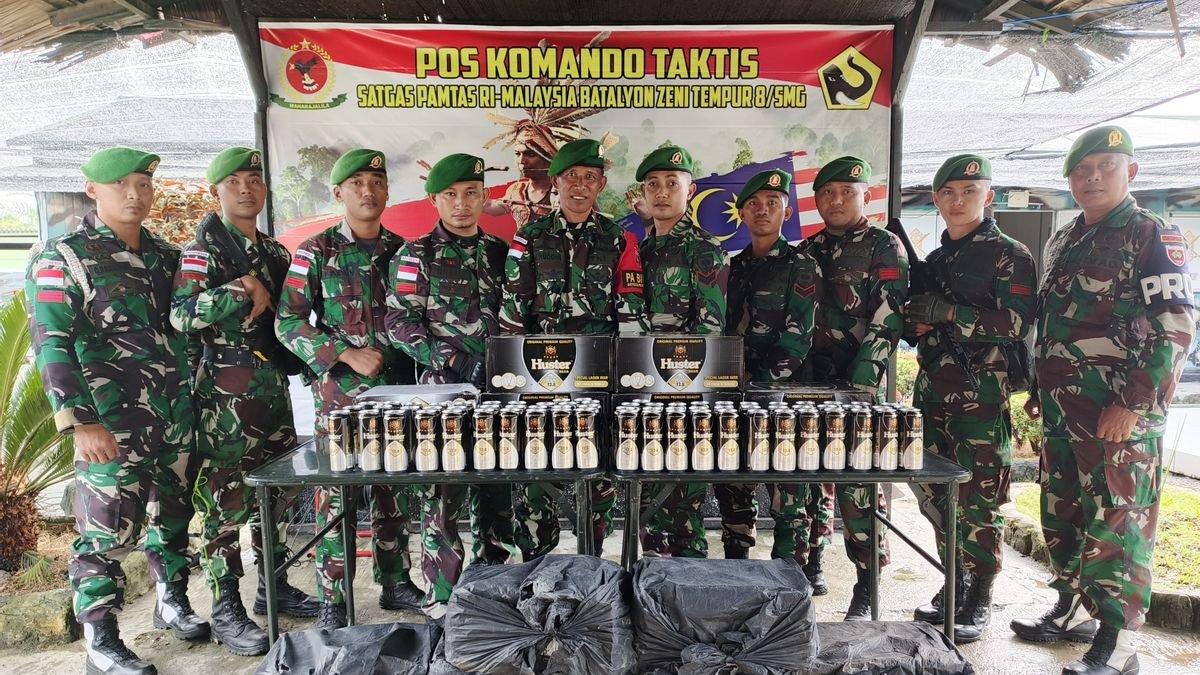 Datawarta – Prajurit Tentara Nasional Indonesia Angkatan Darat (TNI AD) dari Satuan Tugas Pengamanan Perbatasan (Satgas Pamtas) RI–Malaysia, Batalyon Zeni Tempur 8/Sakti Mandraguna (Yonzipur 8/SMG) berhasil menggagalkan upaya penyelundupan ratusan botol minuman keras (miras) ilegal asal Malaysia di wilayah perbatasan Kalimantan Utara.