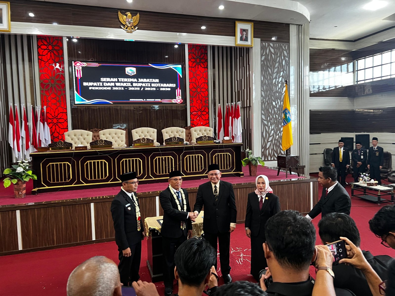 Datawarta, Kotabaru – Serah Terima Jabatan (Sertijab) Bupati dan Wakil Bupati Kotabaru Terpilih periode 2025 – 2030 dilaksanakan di Gedung DPRD Kotabaru Lt.III, Senin(03/03/25). Jabatan yang Sebelumnya dipegang oleh Bupati dan Wakil Bupati Priode 2021-2025, H.Sayed Alaydrus, S.H dan Andi Rudi Latief, S.H, Kini Resmi Beralih kepada Bupati dan wakil Bupati periode 2025-2030, H.Muhammad Rusli, S.sos dan Syairi Mukhlis, S.sos.