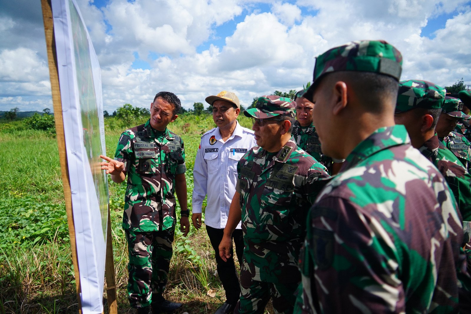 Datawarta, Tanah Bumbu – Wakil Inspektorat Jenderal Angkatan Darat (Wairjenad) Mayjen TNI Muhamad Muchidin, S.Sos. melakukan peninjauan langsung terhadap hibah lahan untuk pembangunan Batalyon Teritorial Pembangunan di wilayah Kodim 1022/Tanah Bumbu.(26/2)
